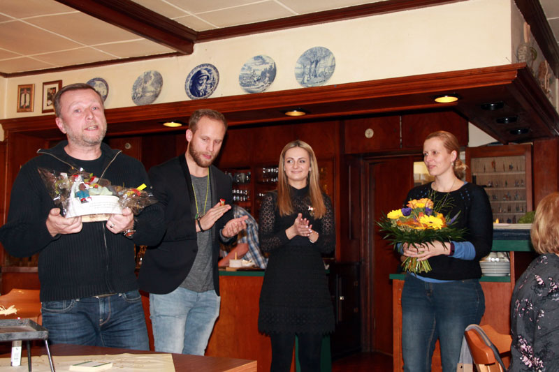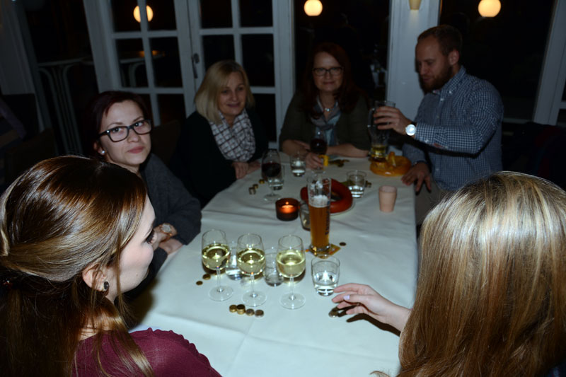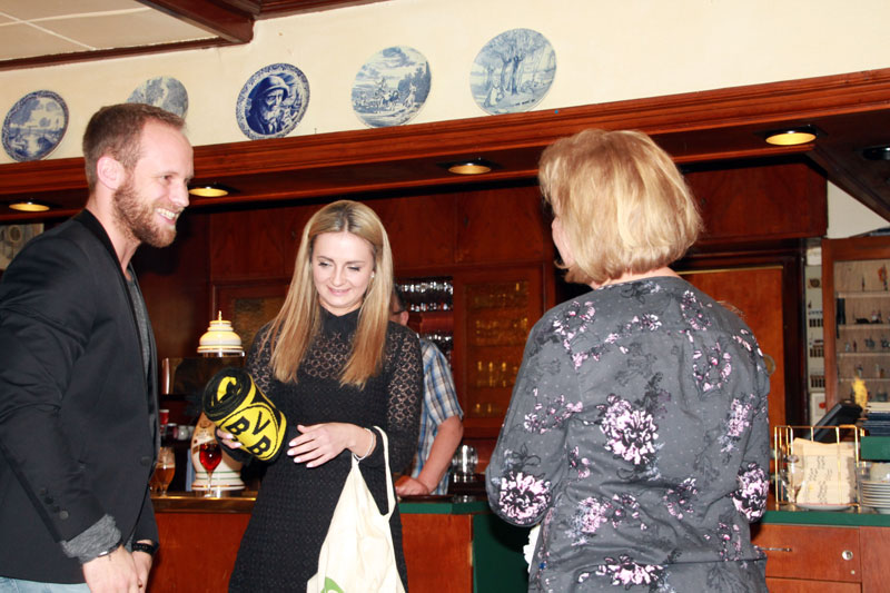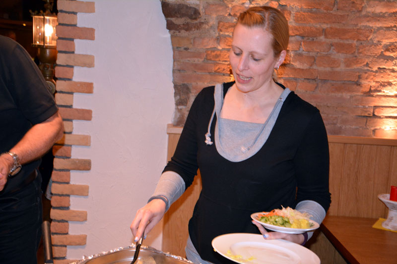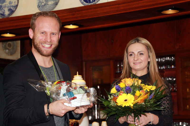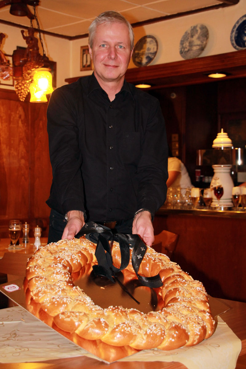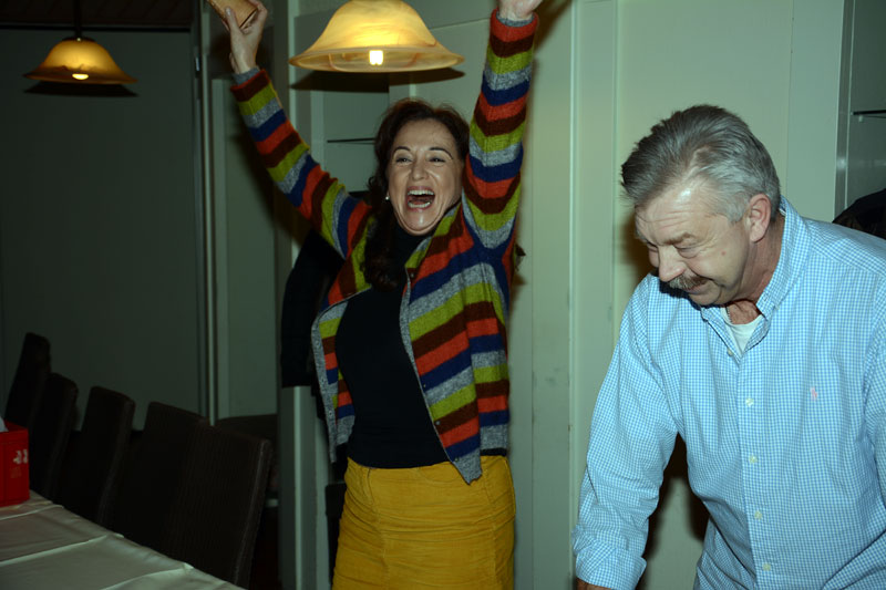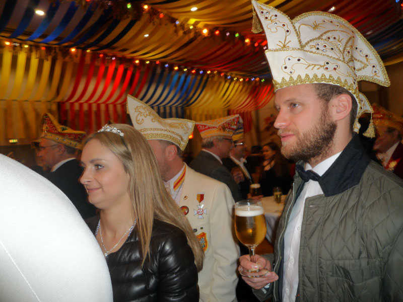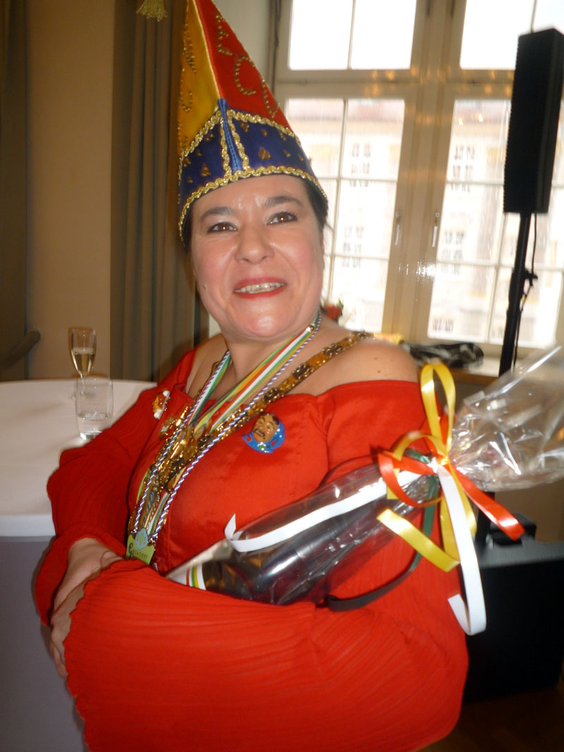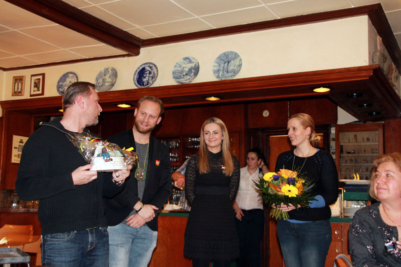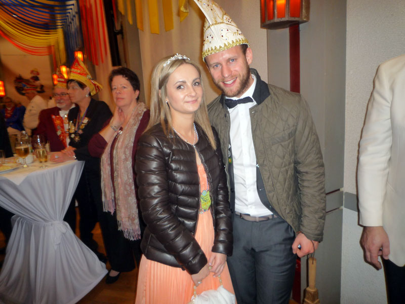 ausgewürfelt. Aktive, Passive und Freunde der Gesellschaft trafen sich im Cafè Pagodenburg um in geselliger Runde das Jahr abzuschließen und über kommende Aktivitäten zu sprechen. Selbstverständlich war auch unser Prinzenpaar, Jasmin II. und Christian II., mit von der Party. Glücklicher Gewinner der großen Neujahrsbrezel war unsere Ingrid Durlach! Wie man sehen kann war die Freude sehr groß!! |