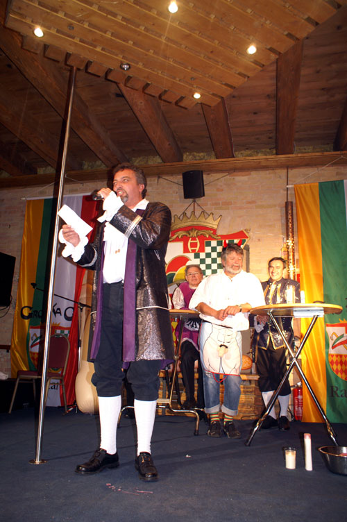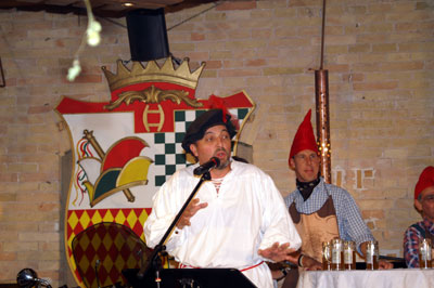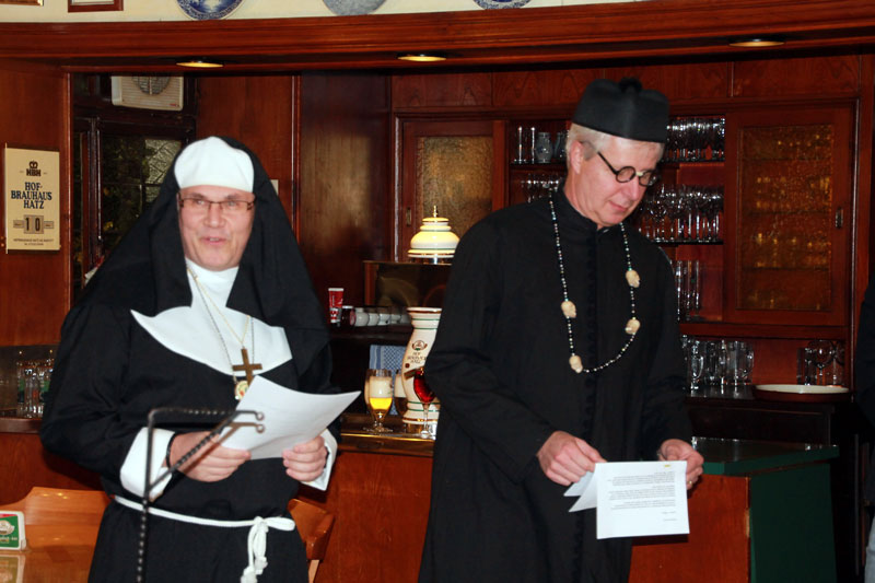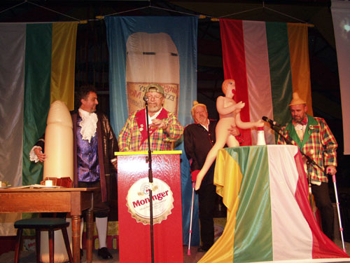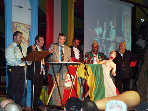 Nach einem gekonnten Beitrag von Schatzmeister Klaus Sutter als "Engel Klausi...." konnte unser Vize Frank Ullrich zum bekannten Thema sein bestes dazugeben: "Donna Blanca von Castillien". Die anschließend vorgetragene Gesangsnummer von Andy Krebs, Hans Reuter und Christian Reuter brachte bekanntes Liedgut mit speziellen Reimen dem Publikum nahe.