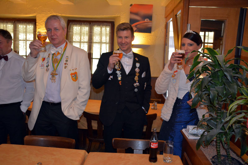 Prinzenpaar, Präsident, Vizepräsident und diverse 11er Räte, große Räte und "Gastrumtrinker" waren dabei. Es war wieder einmal schön bei euch!! |