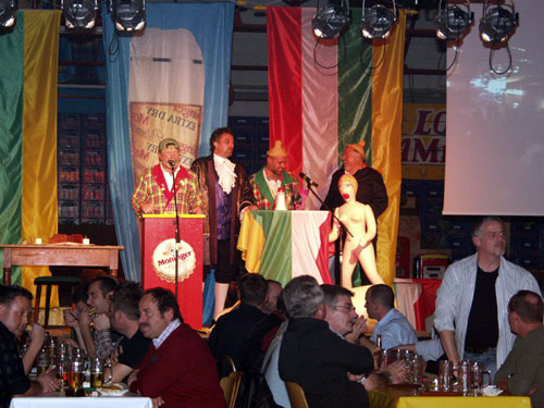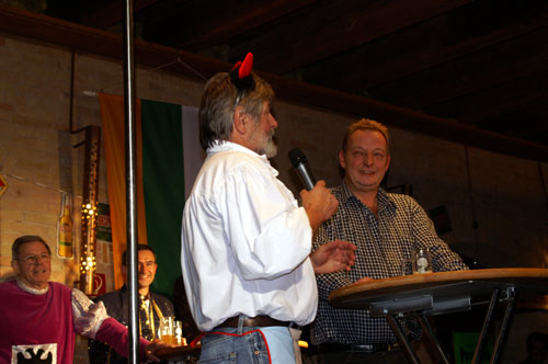 Drei IKEA - Vertreter waren als nächstes an der Reihe. Die 11‘er Räte Holger Metzmeier, Roland Stadtfeld und Jochen Fuchs hatten mit Ihrem Vortrag die Lacher auf Ihrer Seite und ernteten viel Applaus. Nach der Pause kamen die klassisch angehauchten Vorträge: Siegfried Karcher als Schwanzknecht brachte die Lachmuskeln zum zucken und erzählte von seinen Erlebnissen.