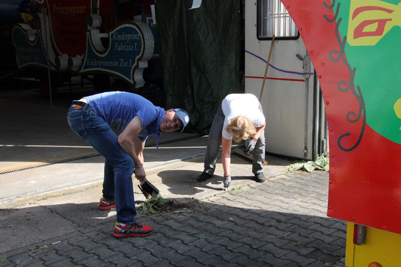 ist vorbei und schon wieder muß gearbeitet werden! In unserem Lager in Sandweier mußte mal wieder Ordnung geschaffen werden, bevor es wieder richtig losgeht. Einige Räte und eine Rätin trafen sich am Samstag, den 21.5. mit Elan und natürlich auch bei schönem Wetter für Arbeit, die gemacht werden muß. 15 Personen waren anwesend und somit war bis zur Mittagszeit alles erledigt und man konnte zum gemütlichen Grillen zusammensitzen und sich des Lebens freuen. Hier einige Bilder von diesem Vormittag. |