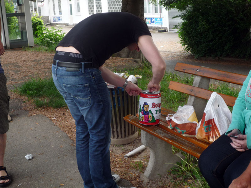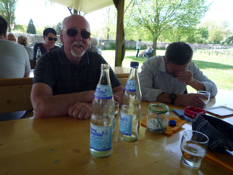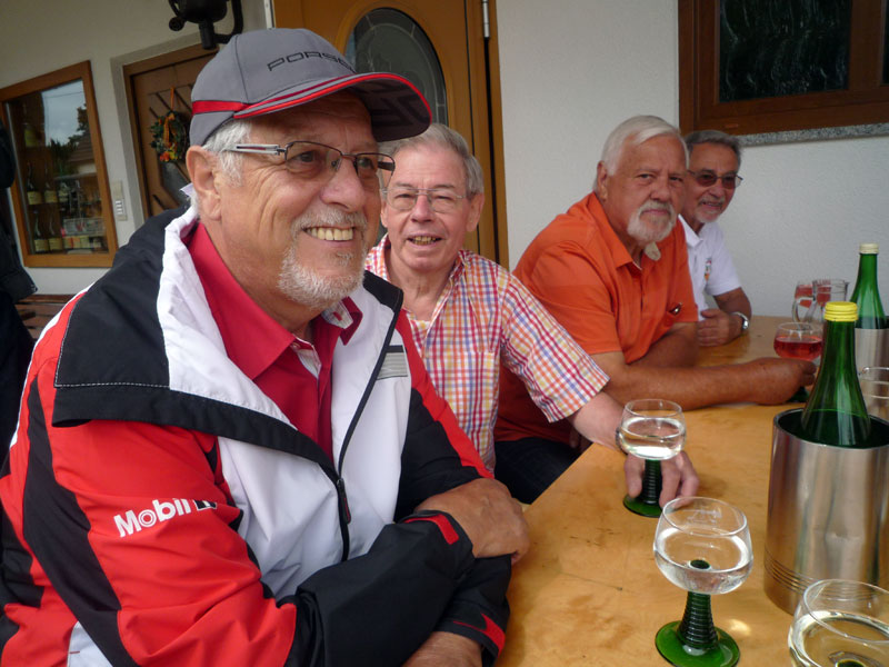 um 9:56 Uhr fuhr die Gruppe mit der S-Bahn über Baden-Baden nach Bühl. Erste Station auf einer Parkbank vor dem Bahnhof! Unser Michael hat heute den 30. Geburtstag und feiert mit uns mit Bier und Wurst in Gottes freier Natur! Weiter geht es nach kurzer Rast per Fuß nach Ottersweier zu unserem Freund Martin Steinel. In seiner zünftigen Besenwirtschaft ließen wir uns gemütlich nieder und tranken reichlich guten Wein! Eine Gruppe verabschiedete sich, der Rest ging wieder per Fuß zurück nach Bühl und mit dem Zug nach Rastatt. Was da noch geschah kann der Schreiber noch nicht mitteilen, er war nicht mehr dabei! |